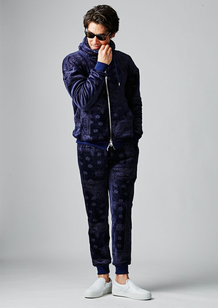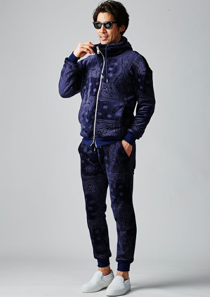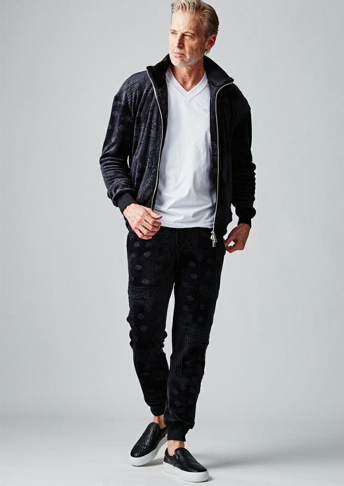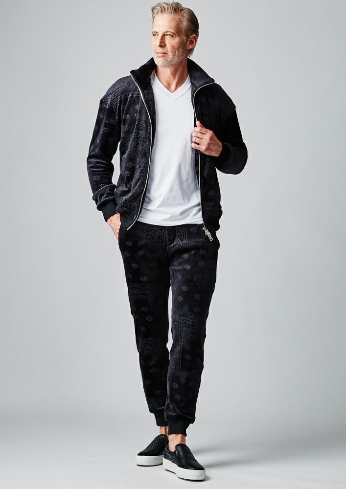【AKM】VELOUR BANDANA PONTI ZIP PARKA -BLACK-