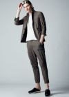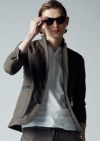 ベーシックな 2B ジャケットにアクセントとしてスポーティーな印象の