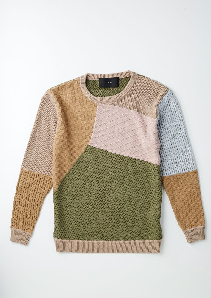 【K209 / COMBED L/S RELAX PATCHWORK KNIT -MULTI COLOR-】