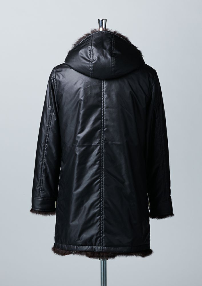 【AKM】ECO FUR WRAP HOODED -BLACK-