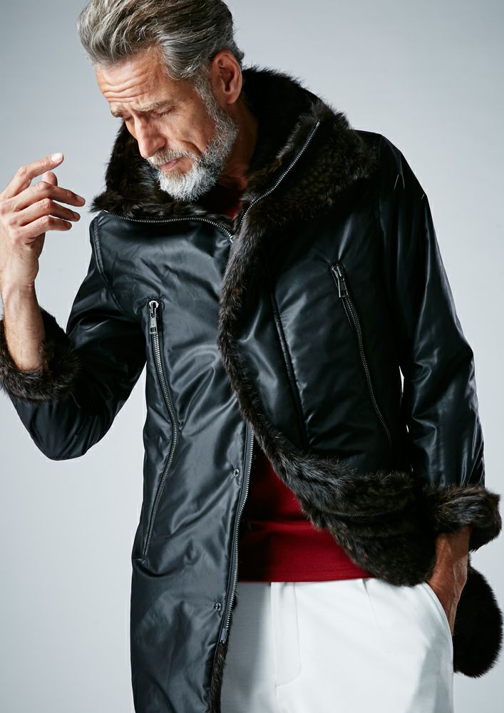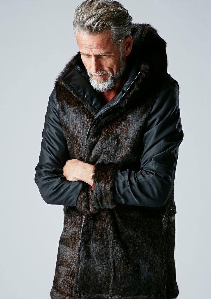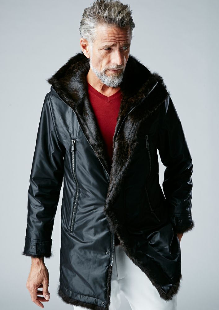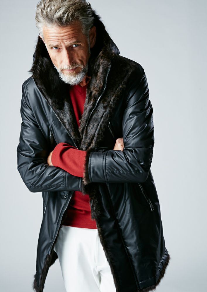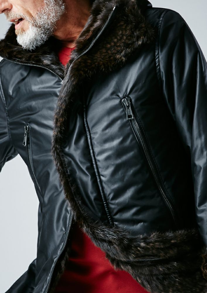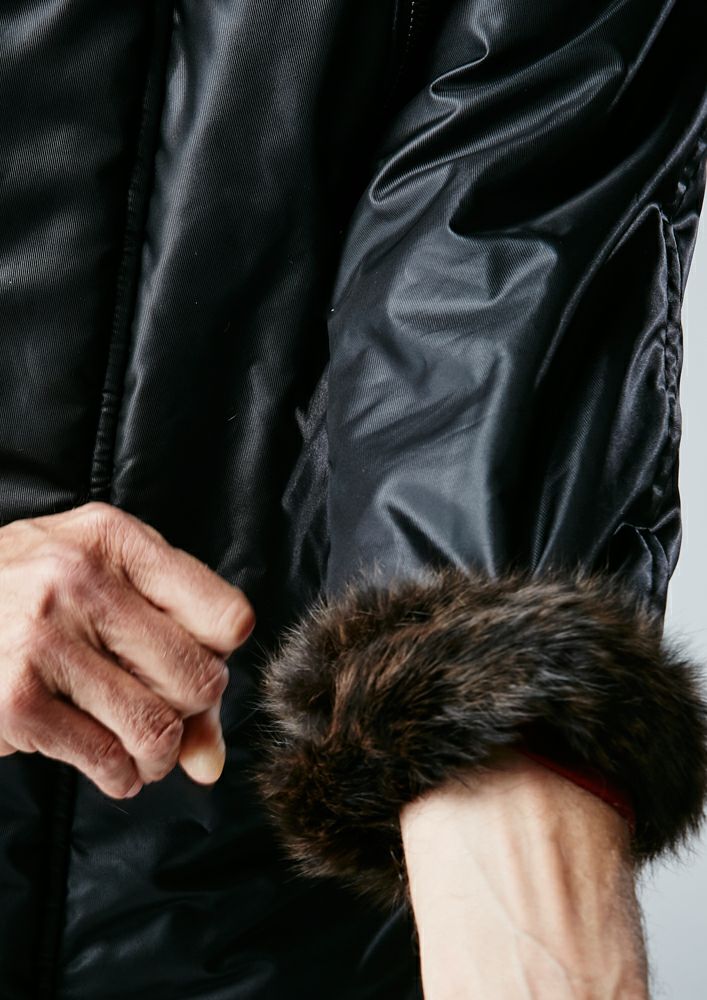 【AKM】ECO FUR ZIP HOODED -BLACK-