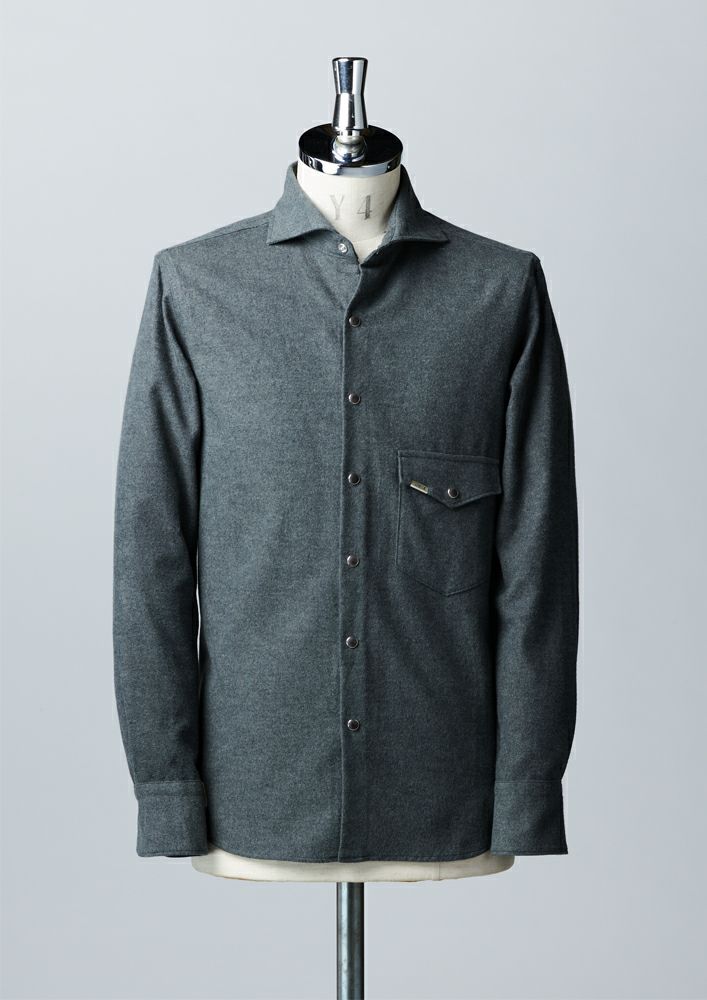【S123 / COTTON FLANNEL ONE FLAP SHIRTS -GRAY-】