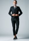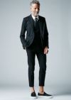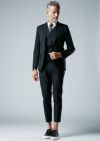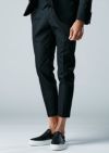 で、セットアップのスタイリングだけでなく、単体でも穿けるようにしています。今季は裾の処理をシングル仕上げにしています。
