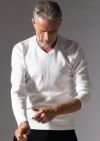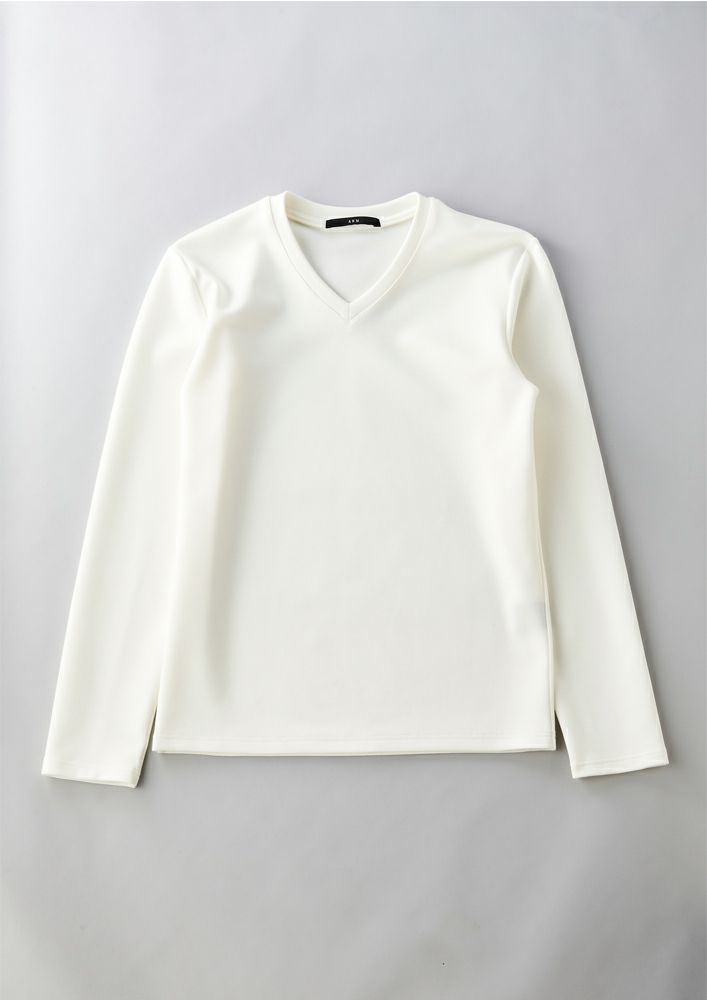 【T210 / DUAL WARM MOIST PONTI L/S V-NECK -WHITE-】