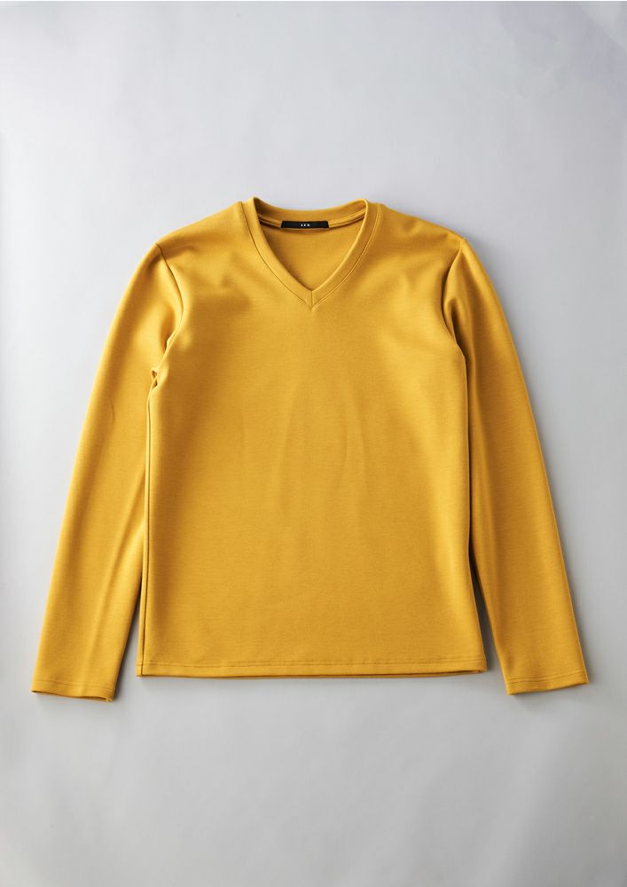 【T210 / DUAL WARM MOIST PONTI L/S V-NECK -MUSTARD-】