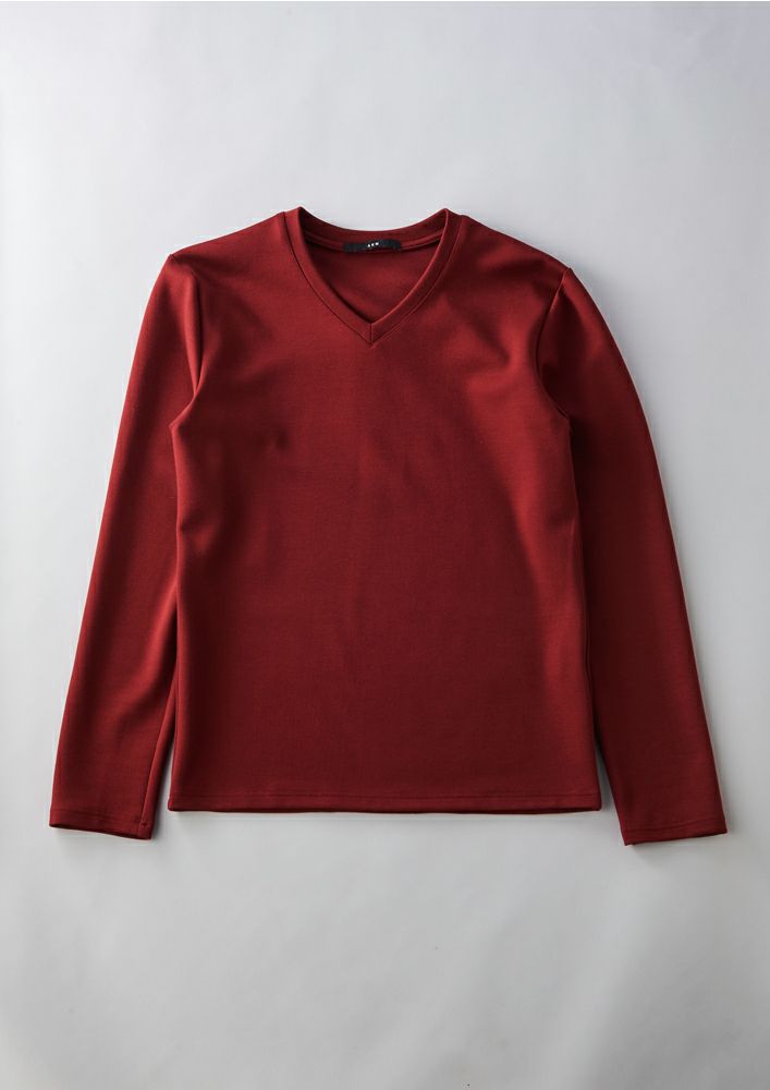 【T210 / DUAL WARM MOIST PONTI L/S V-NECK -BURGUNDY--】