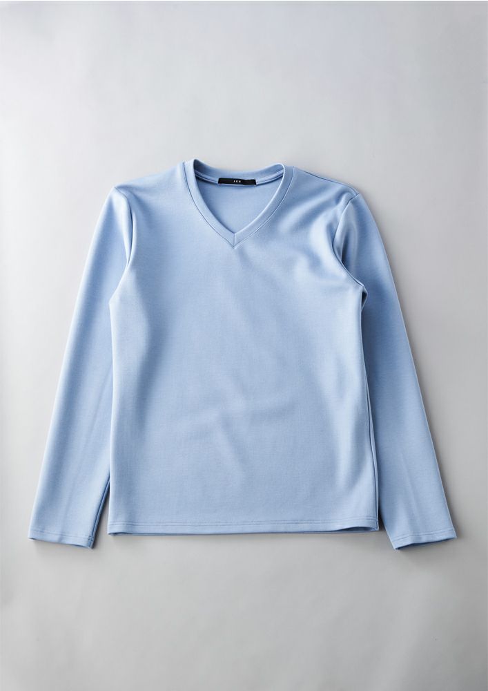 【T210 / DUAL WARM MOIST PONTI L/S V-NECK -SAX-】