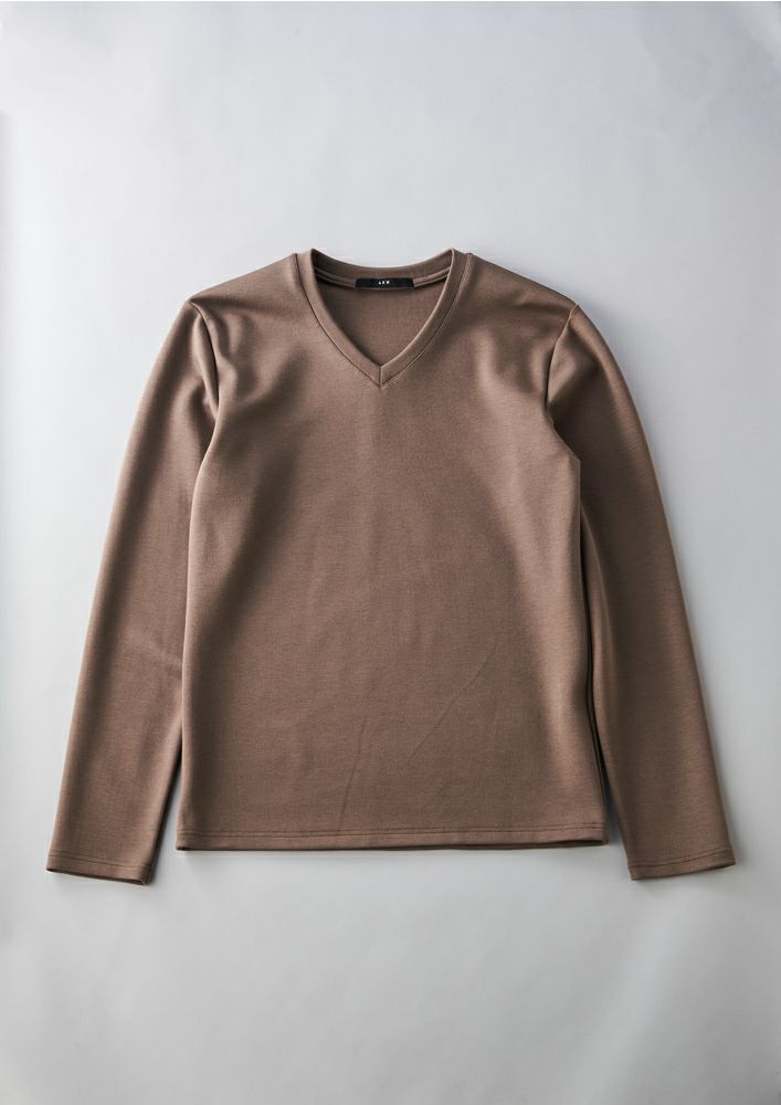 【T210 / DUAL WARM MOIST PONTI L/S V-NECK -GRAY BEIGE-】
