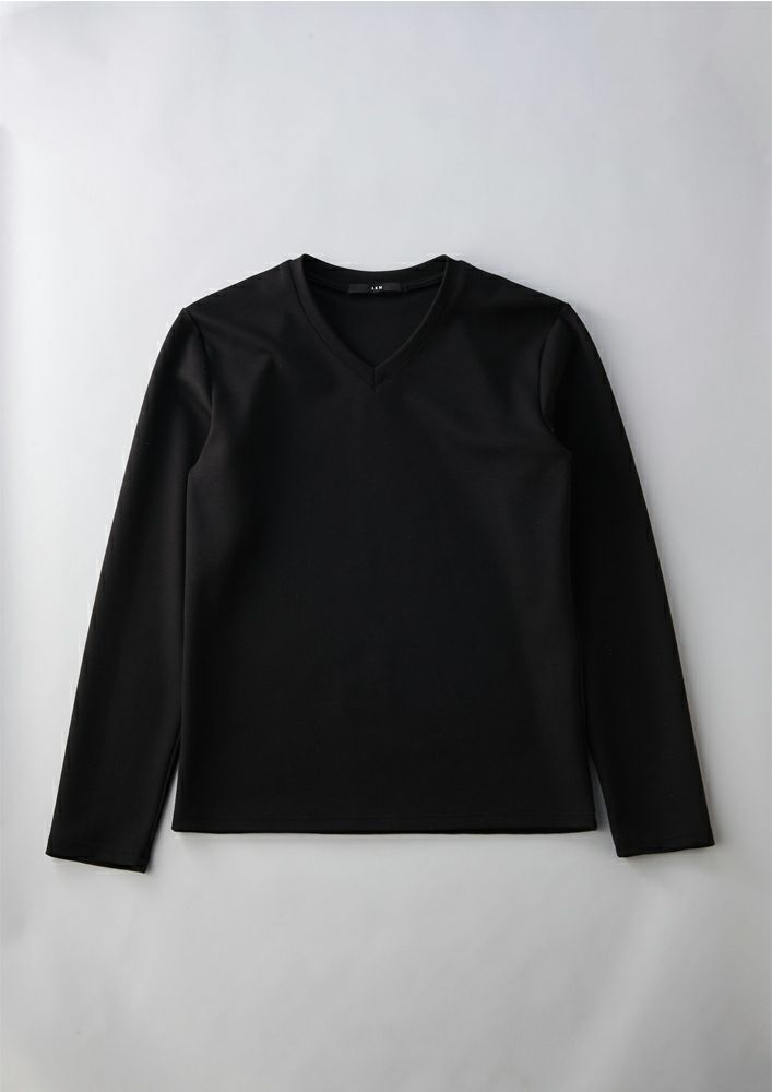 【T210 / DUAL WARM MOIST PONTI L/S V-NECK -BLACK-】
