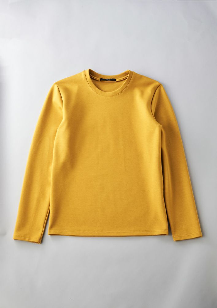 【T211 / DUAL WARM PONTI L/S CREW-NECK -MUSTARD-】