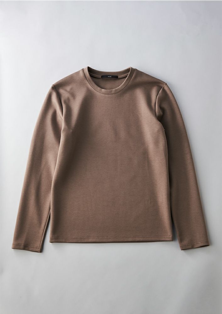 【T211 / DUAL WARM MOIST PONTI L/S CREW-NECK -GRAY BEIGE-】