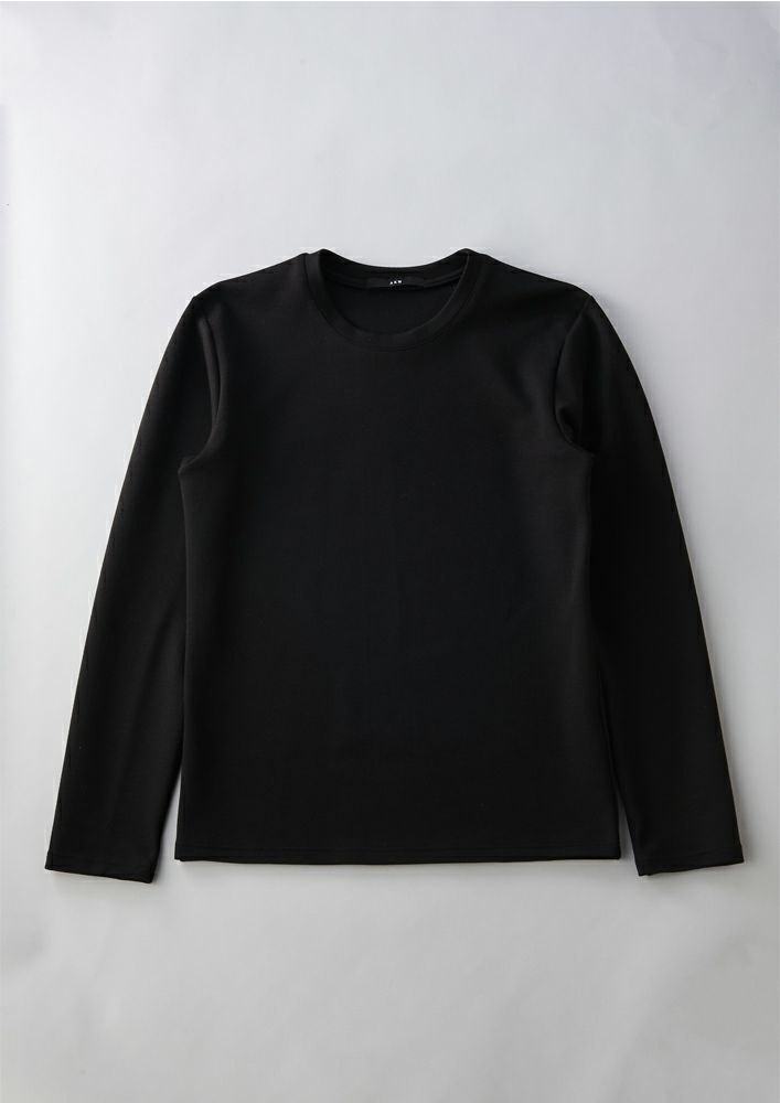 【T211 / DUAL WARM MOIST PONTI L/S CREW-NECK -BLACK-】