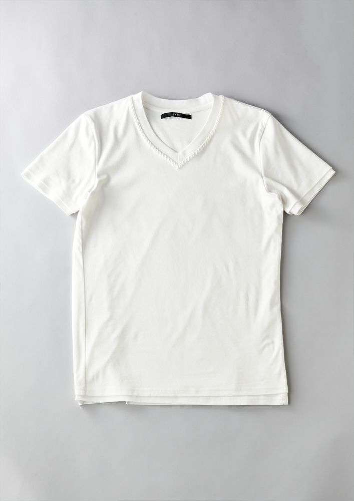 仕様は2枚のTシャツを1枚にした二重構造です。 カットソーの顔とも言えるネック形状は男らしさと上品さを兼ね備えたVネックを採用しています。
