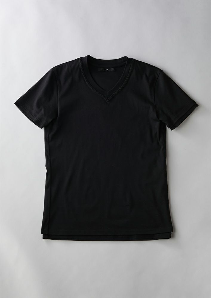 【T207 / SMOOTH COTTON S/S HAND STITCH V-NECK -BLACK-】