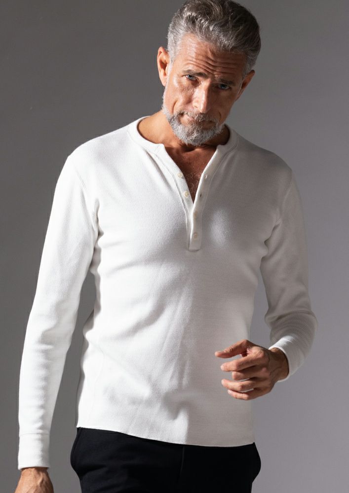 【AKM】THERMAL BOMBER L/S HENLEY NECK -WHITE-