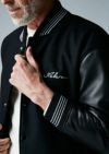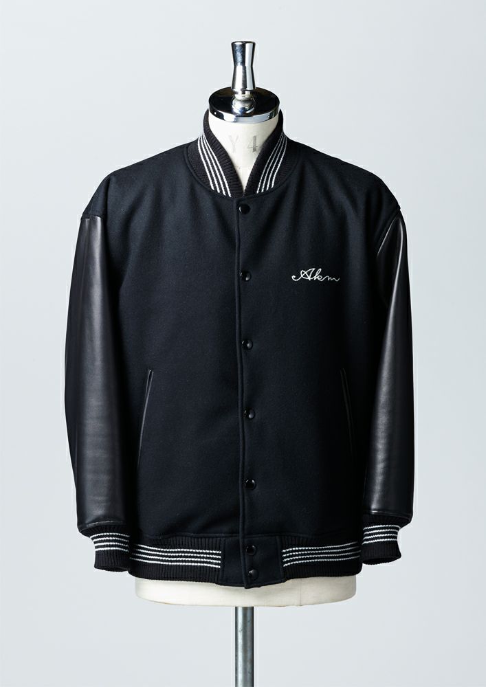 AKMより新型のスタジアムジャンパーの登場です。タイト過ぎず、ややゆとりのあるサイズ感にしております。表地、袖のスパニッシュラム革「SENA」、オリジナルで編み立てた4本ラインリブ、ドット釦の色まで同色系で統一し、上質でクリーンなスタジャンが完成しました。また、左胸に配した手書き風「Akm」ロゴをチェーン刺繍で表現し、アイキャッチーでレトロな印象も与えます。