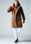 【C077 / ECO FUR WRAP HOODED -BROWN-】