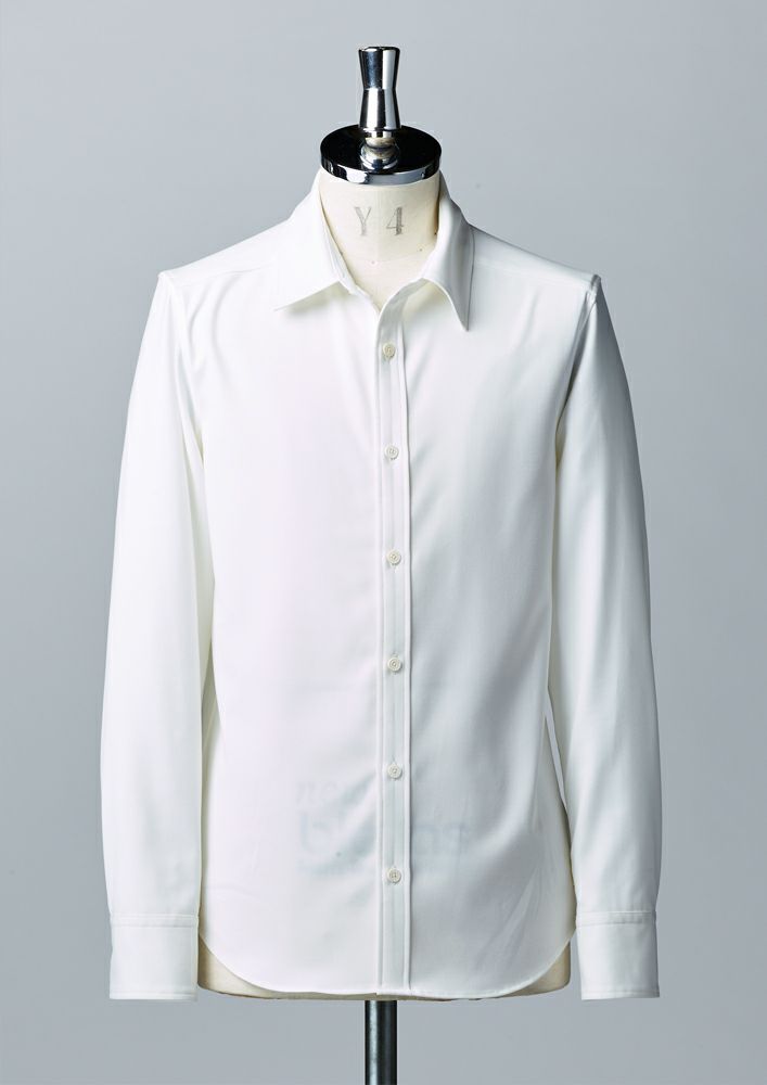 AKM定番のプレーンシャツ。 ドレスシャツを タイトフィッティングに直線的なディテールで構築したベーシックシャツ。