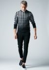 タイトフィットな”デニスラ”(デニムスラックス)の発表です。 カジュアルの代名詞的なデニム素材をドレッシーなセンタープレス入りスラックスに落とし込みました。 フロントはタック釦で、前開きは ZIP 仕様です。 後ポケットは釦を付けずに両玉縁ポケットにし、裾はダブルに仕上げています。 立体ヒゲ、アタリは品良く抑えめで、ストレッチ性の高いハイパワーストレッチデニムは美しいシルエットを生み、 着心地も抜群です。