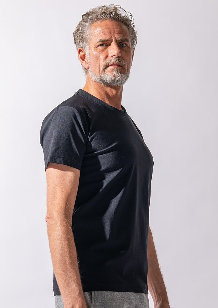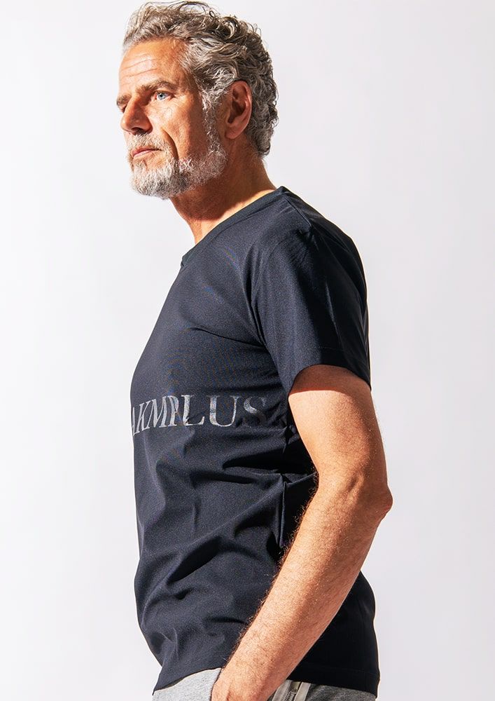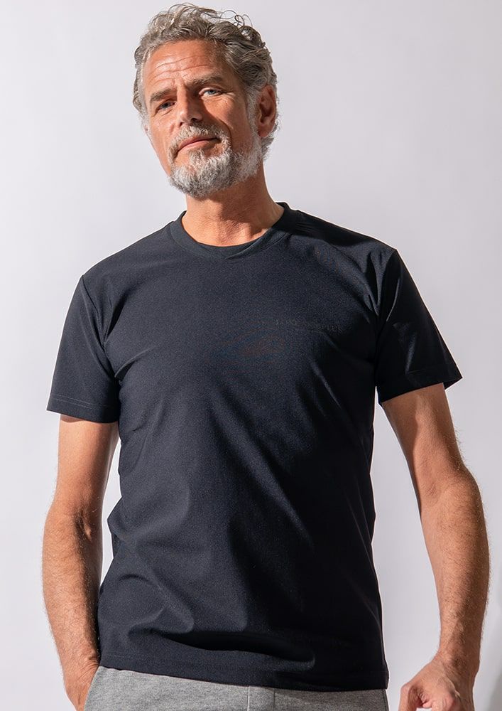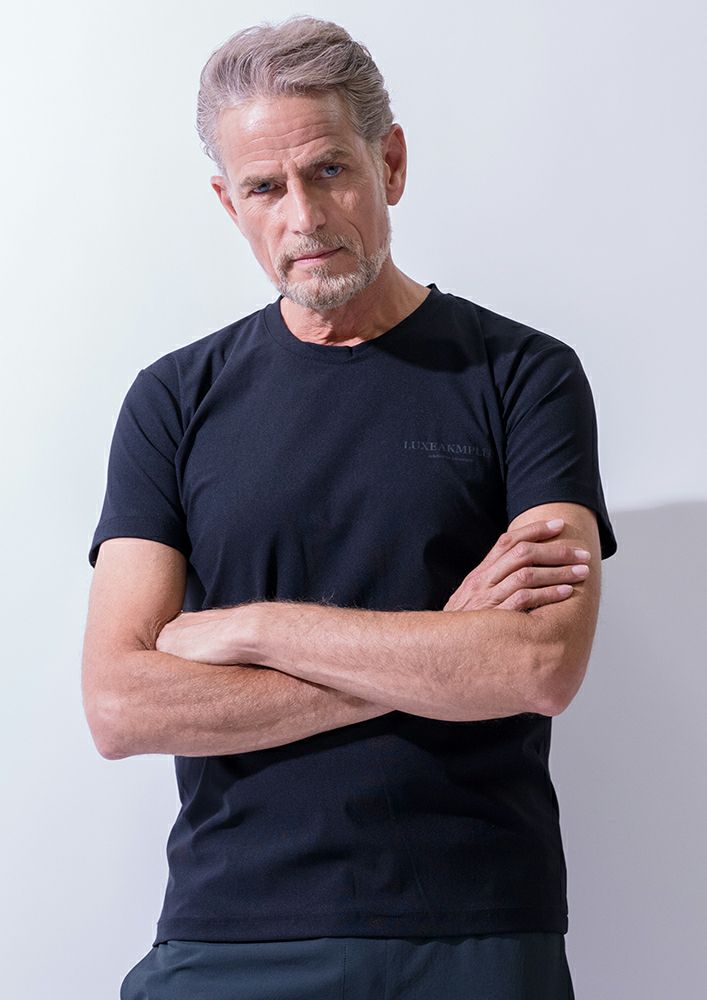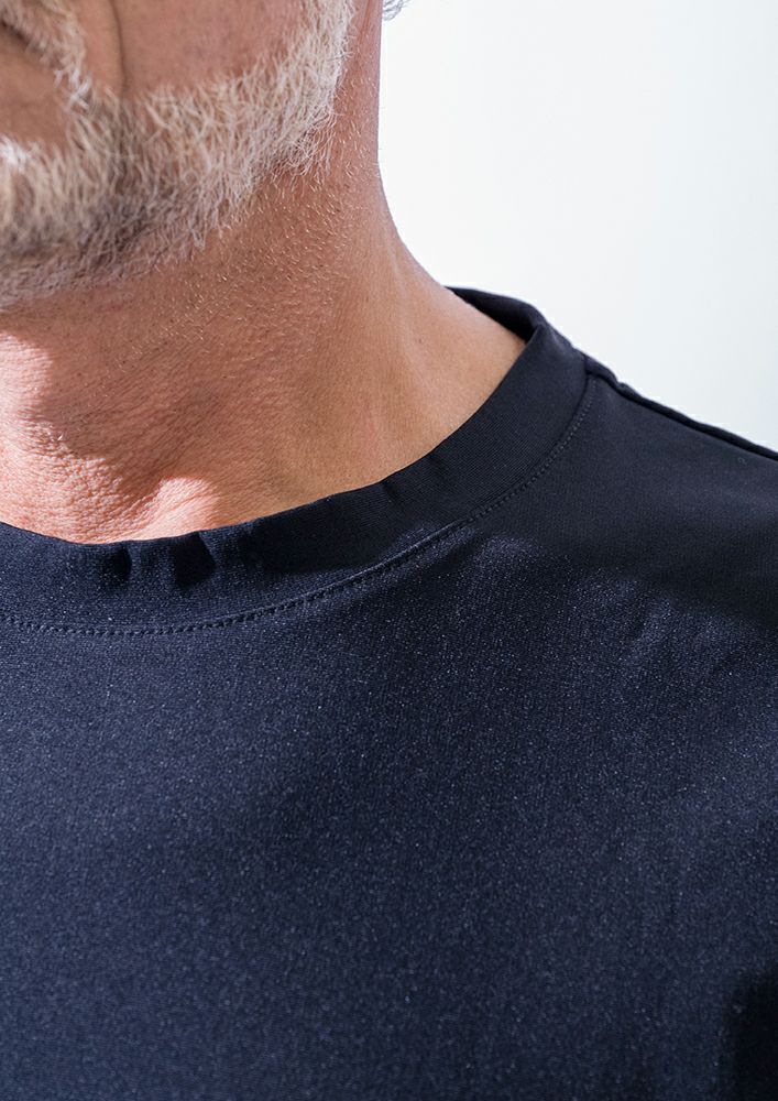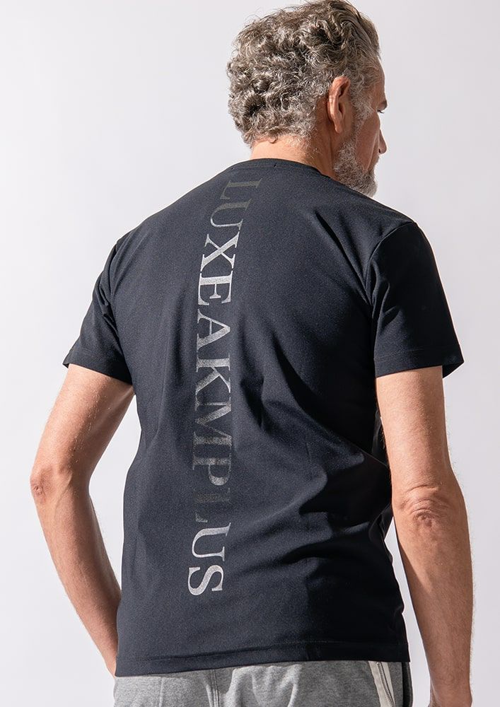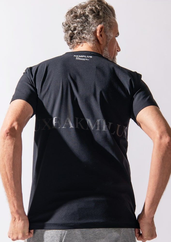 【AKM PLUS】1P LOGO HYBRID NECK S/S-BLACK-