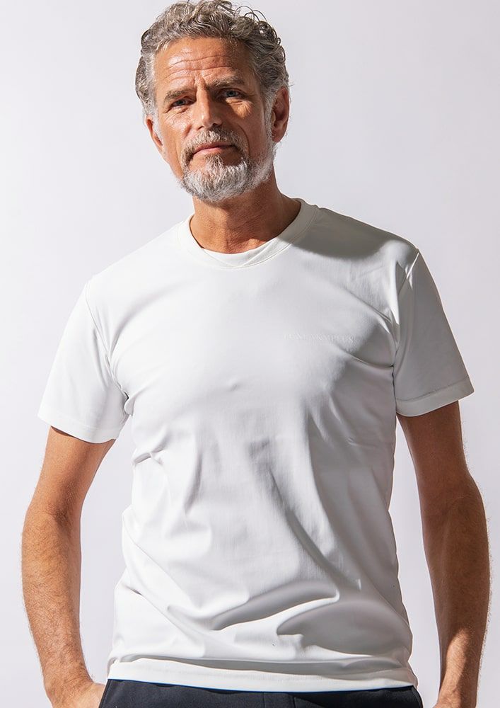 【AKM PLUS】1P LOGO HYBRID NECK S/S-WHITE-