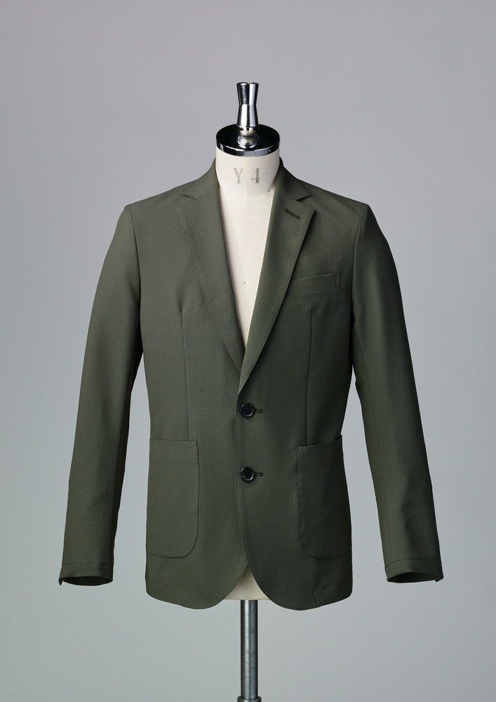 【 B416 / STRETCH SEER SUCKER SWING EASY JACKET -KHAKI- 】