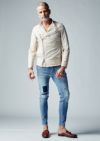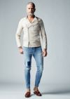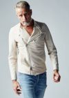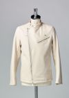 今季はフロントZIPを斜めに配し、セミダブル仕様にしています。過度なデザインを敢えて避け、シンプルでアーバンな面持ちを心がけて製作しています。