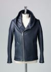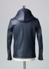 AKMにてこれまで発表してきたダブルライダースとラップフーデッドとを掛け合わせた今作。 フード回りのシルエットをいかに美しく見せるかに拘りながら、フロントと袖口はライダースさながらのAKMオリジナルのエクセラZIPPER仕様。 腰は箱ポケットを採用し、過度な装飾は避け、表革の良さを一番に感じられるよう、シンプルに仕上げました。