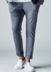 クラシックなトラウザーをベースにリラックスイージーパンツにリデザイン。 ヒップからワタリにかけて、ゆとりを持たせ裾にかけてテーパードさせ、リラックス感とシャープさを兼ね備えたシルエットに仕上げています。 金属チップ加工を施した高級感のあるスピンドルをウエストに採用しています。