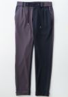 クラシックなトラウザーをベースにリラックスイージーパンツにリデザイン。 ヒップからワタリにかけて、ゆとりを持たせ裾にかけてテーパードさせ、リラックス感とシャープさを兼ね備えたシルエットに仕上げています。 金属チップ加工を施した高級感のあるスピンドルをウエストに採用しています。