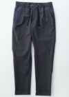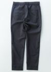 クラシックなトラウザーをベースにリラックスイージーパンツにリデザイン。 ヒップからワタリにかけて、ゆとりを持たせ裾にかけてテーパードさせ、リラックス感とシャープさを兼ね備えたシルエットに仕上げています。 金属チップ加工を施した高級感のあるスピンドルをウエストに採用しています。