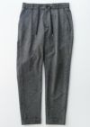 クラシックなトラウザーをベースにリラックスイージーパンツにリデザイン。 ヒップからワタリにかけて、ゆとりを持たせ裾にかけてテーパードさせ、リラックス感とシャープさを兼ね備えたシルエットに仕上げています。 金属チップ加工を施した高級感のあるスピンドルをウエストに採用しています。