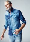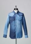 、EURO AMERICANを具現化した綿100%のデニムシャツです。今季はクレイジー配色仕様で加工はリアルな美ユーズド加工で