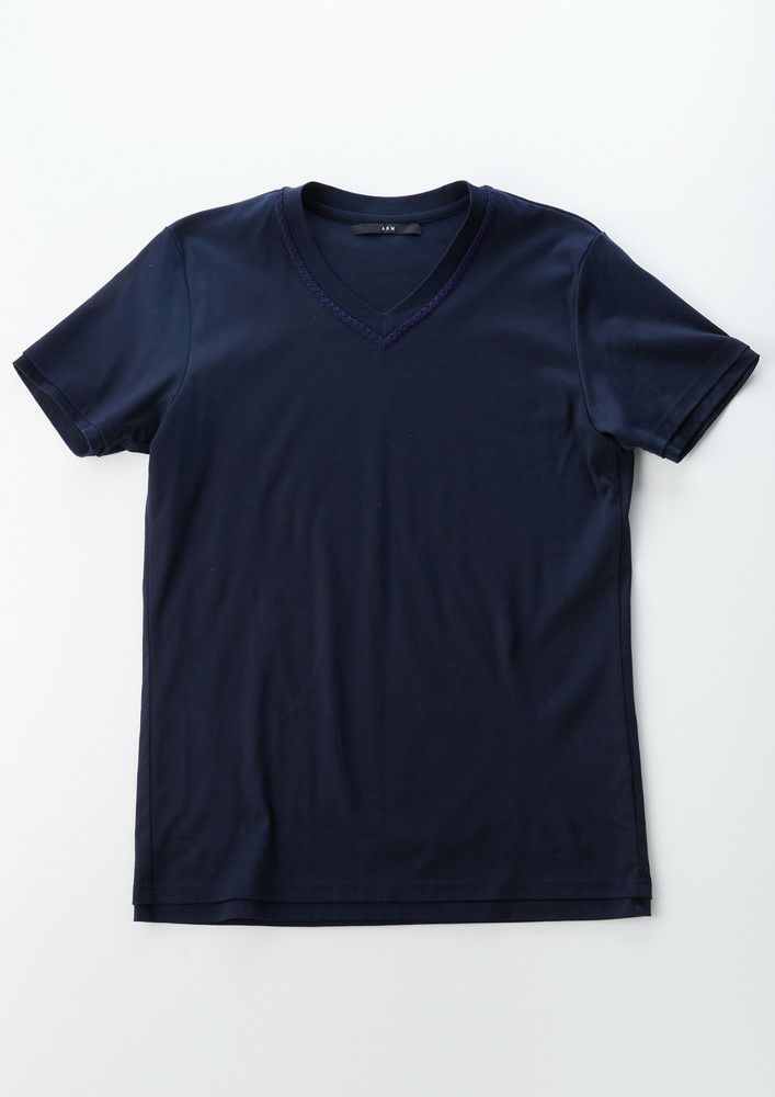 【 T213 / BIO SMOOTH S/S HAND STITCH V-NECK -INDIGO- 】