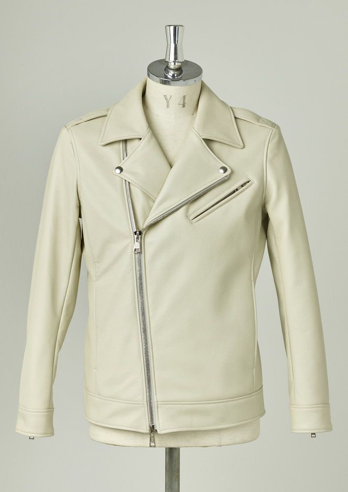 VINTAGEのモーターライダースをデザインソースにしたW-RISERSの登場です。腰のベルトは排除し、極力シンプルに品良く仕上げました。