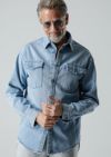 AKM デニムコレクションより新型のシャツアウターの登場です。肩幅、身巾、袖巾をたっぷりとゆとりあるビッグシルエットに仕上げています。ヘビーオンスの重厚なデニムを敢えてこのシャツに使用することで、カバーオール的なアウターとしての位置付けとしてご提案します。特徴的な大きめの胸ポケットが男らしく、加工もヒゲやクラッシュ、リペアなどをぜずに自然な色落ちによる美しい経年変化を再現しています。