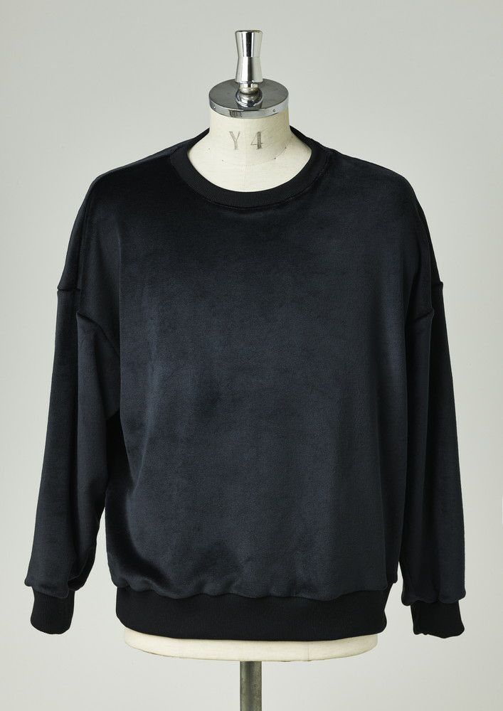 【 B440 / VELOUR BOMBER DROP SHOULDER BACK LOGO CREW -BLACK- 】