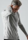 7G(ゲージ)の変則編み(縄編み×鹿の子ワッフル編み)クルーネックニットです。