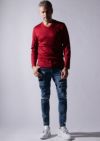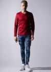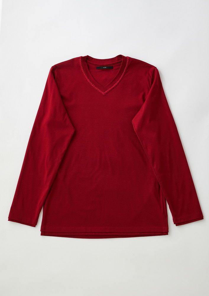 【AKM】L/S HAND STITCH V-NECK -RED-