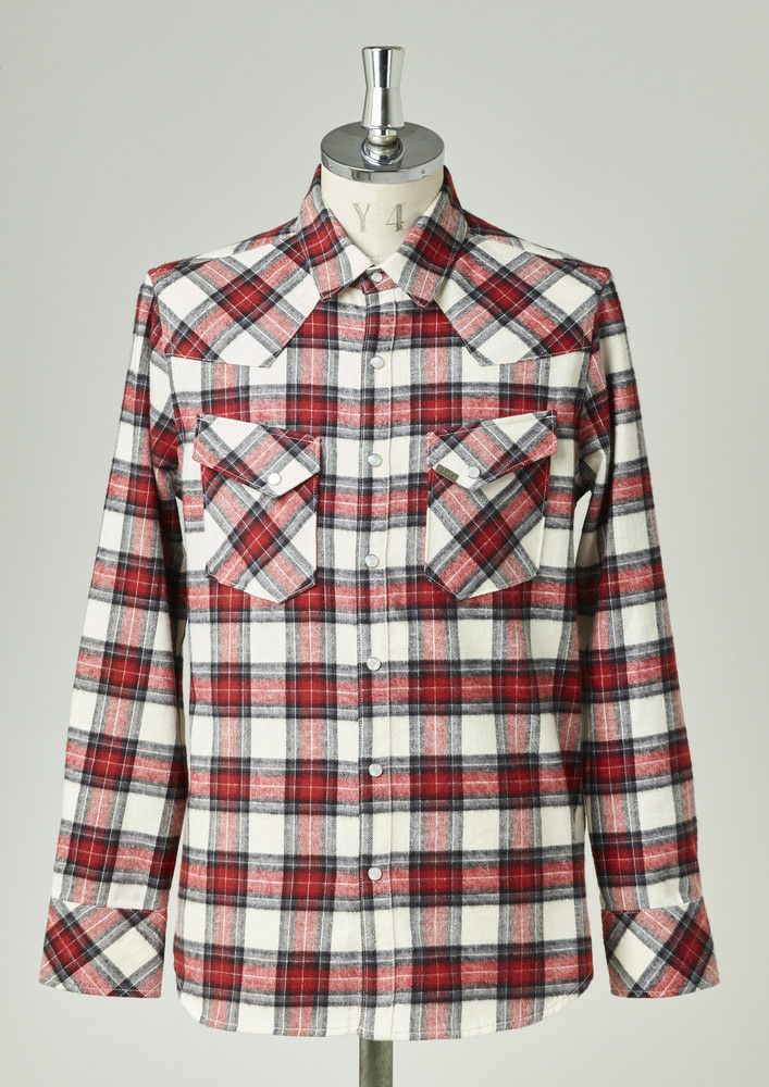 【 S132 / FLANNEL WESTERN CHECK SHIRTS -WHITE/RED- 】