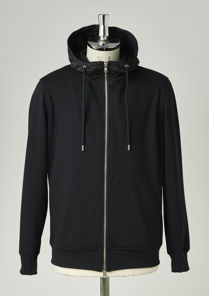 AKMお馴染みのネックZIPパーカー型ブルゾンです。シームを利用したミニマムな腰ポケットと各所のリブ使いが特徴で、フード表のみストレッチタフタを使用することでアクセントにしています。ZIPはAKMオリジナルエクセラを採用し、細部にも抜かりなくスポーティーに仕上げています。