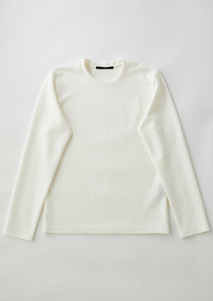 【 T223 / DUALWARM MOIST PONTI L/S CREW-NECK -WHITE- 】