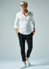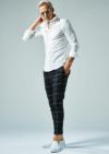 ドレスシャツを タイトフィッティングに直線的なディテールで構築したベーシックシャツ。