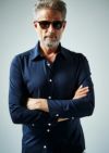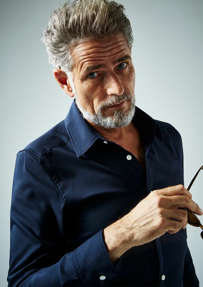 ドレスシャツを タイトフィッティングに直線的なディテールで構築したベーシックシャツ。