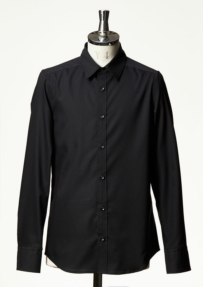 ドレスシャツを タイトフィッティングに直線的なディテールで構築したベーシックシャツ。