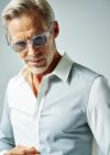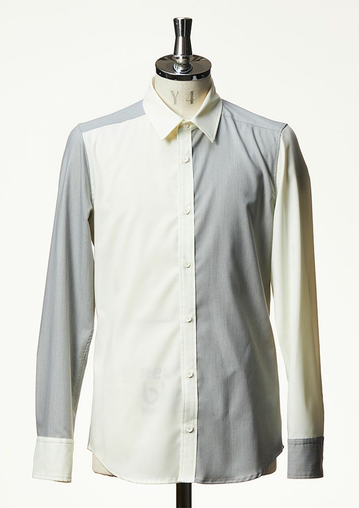 ドレスシャツを タイトフィッティングに直線的なディテールで構築したベーシックシャツ。