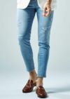 【 P323 / HIGH POWER STRETCH DAMAGED 5POCKET SKINNY DENIM -BLUE HARD USED- 】