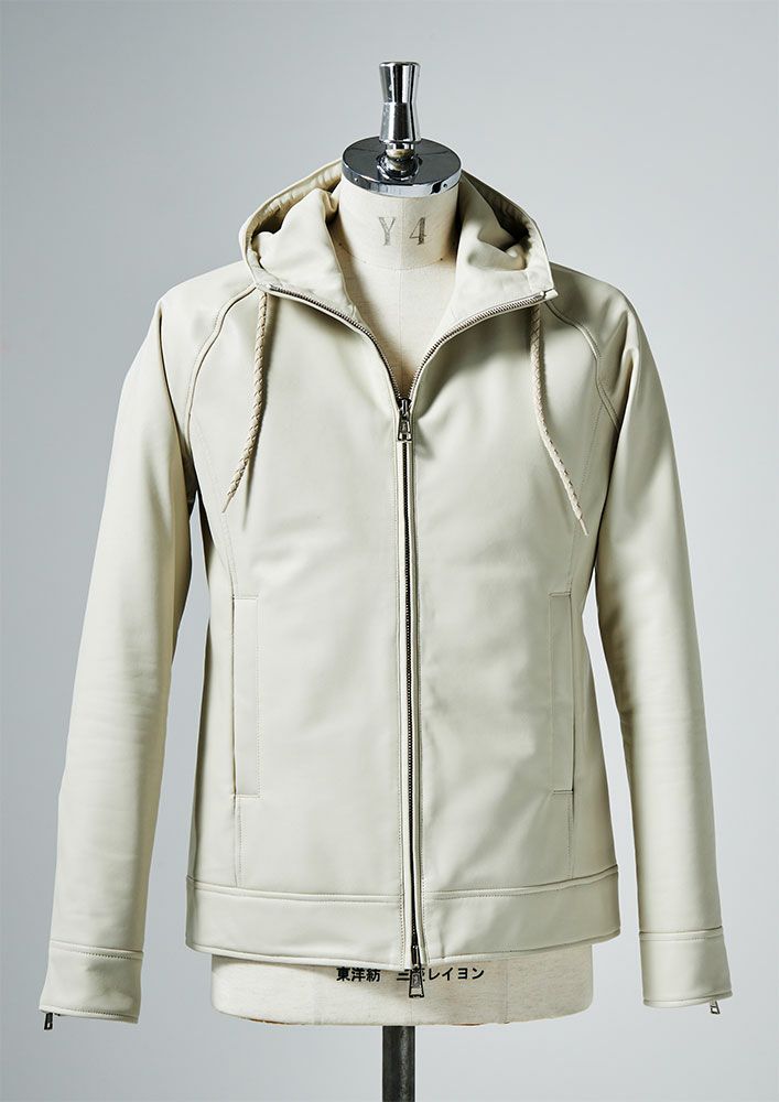 AKM 定番の NECK ZIP PARKAを6年ぶりに発表します。リブ使いを排除し、ライダース風に仕上げたラグランスリーブのレザーパーカー。タイト過ぎないように現代風にシルエットを改良しています。裏地はキュプラ100%を採用しています。
