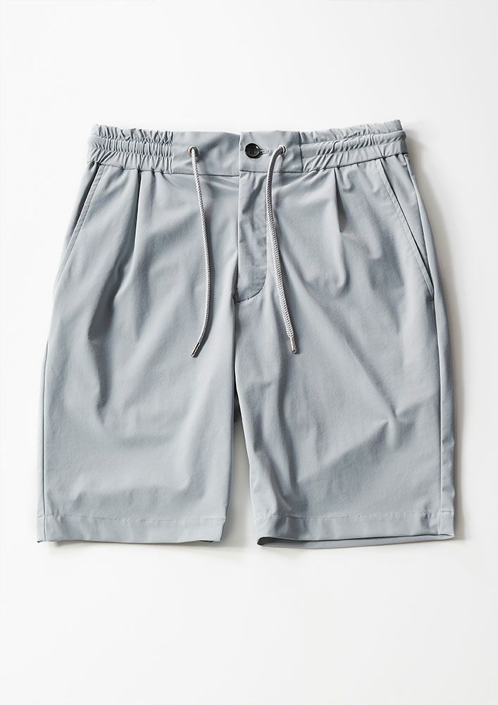 クラシックなトラウザーをベースにリラックスイージーショーツにリデザイン。 ヒップからワタリにかけて、ゆとりを持たせ裾にかけてテーパードさせ、リラックス感とシャープさを兼ね備えたシルエットに仕上げています。 金属チップ加工を施した高級感のあるスピンドルをウエストに採用しています。