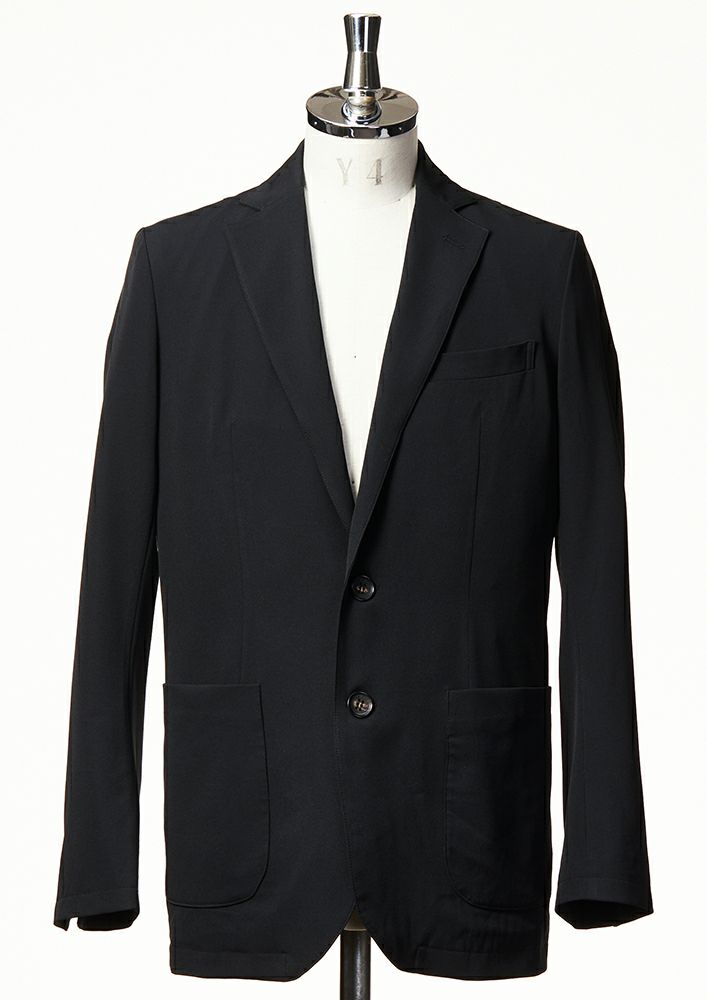 パッチポケットが特徴的なシングルノッチドラペルジャケットは総裏仕立てで身返しはお台場仕様とより